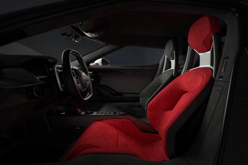 ส่วนงานตกแต่งภายใน ก็ยังคงคอนเซปท์ให้ลูกค้าเลือกได้ว่าจะเน้นโทนสีดำ-แดง หรือ ดำ-น้ำเงิน เช่นกัน เพราะในส่วนเบาะนั่งแบบหลังแข็งงานคาร์บอน ทางฝั่งผู้ขับ จะมาพร้อมกับการหุ้มหนังอัลคันทาราเฉดสีตามที่เลือก ส่วนฝั่งผู้โดยสาร จะหุ้มด้วยหนังอัลคันทาราสีดำ แต่ลูกค้าสามารถเลือกเดินตะเข็บด้ายสีเดียวกับเบาะฝั่งผู้ขับได้