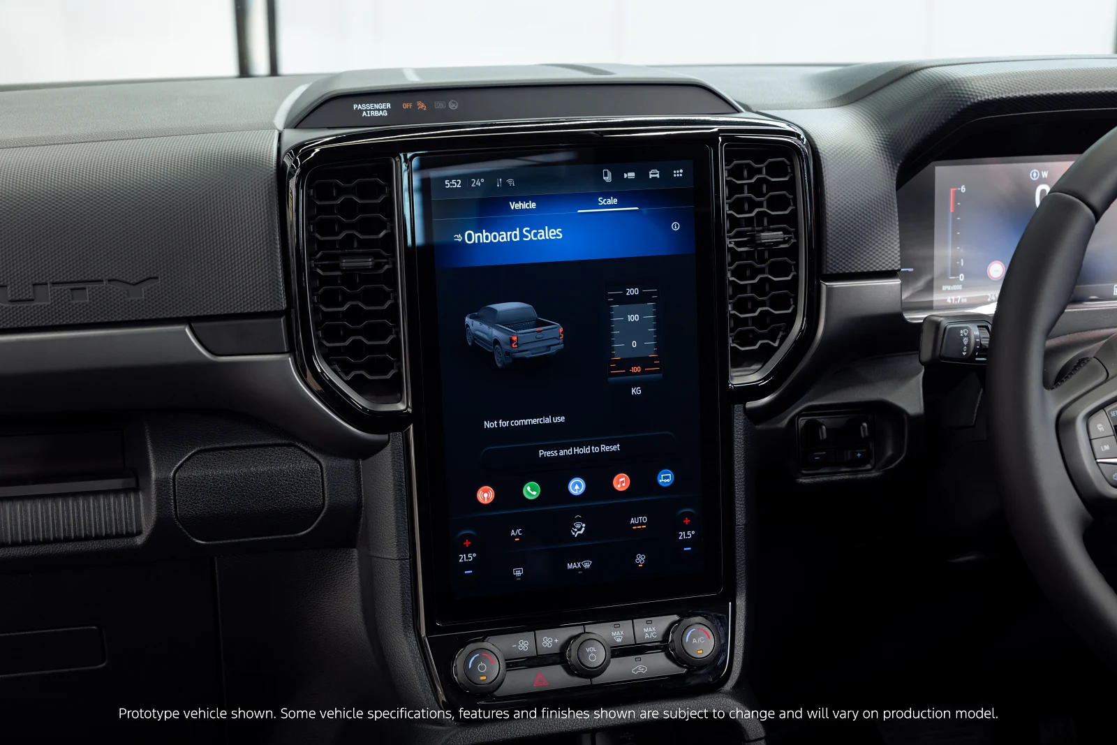 ทางด้านภายในรถมาพร้อมกับระบบเครื่องเสียงจอสัมผัสขนาด 12 นิ้ว พร้อม Aux Switch สำหรับการติดตั้งอุปกรณ์เสริมเพิ่มเติมได้ตามต้องการ นอกจากนี้ยังทำที่ยึดอุปกรณ์เสริมฝั่งคนนั่งที่สามารถรับน้ำหนักได้มากถึง 4 กก. โดยออกแบบให้มันไม่บังตำแหน่งถุงลมนิรภัยในฝั่งคนนั่ง