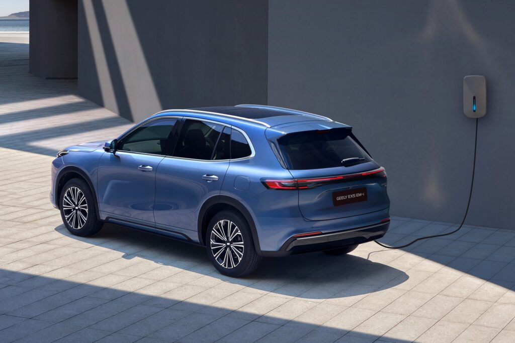 มีหลังคาพาโนรามิกซันรูฟ พร้อมราวหลังคา คิ้วขอบล้อสีดำ ไฟท้าย LED แนวยาว ติดตราโลโก้ตัวอักษร GEELY ฝาท้ายเปิด-ปิดด้วยระบบไฟฟ้า กันชนหลังดีไซน์ลงตัวกับตัวรถ และล้อแม็กซ์ให้เลือกทั้งขนาด 18-19 นิ้ว