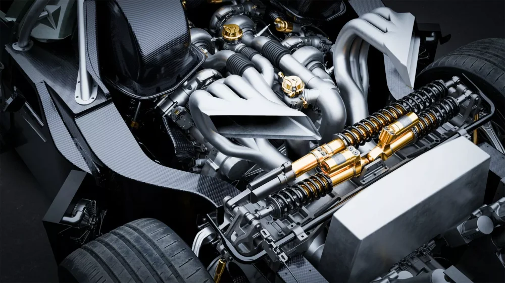 โดยสิ่งที่เหนือกว่า หากว่ากันตามหน้าสเป็คชีท ของเจ้ารถไฮเปอร์คาร์รุ่นนี้ ก็คือการที่ขุมกำลัง V12 ทำมุม 120 องศา เพื่อกดจุดศูนย์ถ่วงให้ต่ำที่สุด พร้อมขนาดเสื้อสูบความจุรวมใหญ่ถึงระดับ 7.0 ลิตร (ความจุจริง 6,988cc) แถมยังเสริมด้วยระบบอัดอากาศเทอร์โบชาร์จเจอร์อีก 4 ตัวเข้าไป ของมัน สามารถเค้นแรงม้าสูงสุดได้มากถึง 2,157 PS ที่ 9,000 รอบ/นาที และมีแรงบิดสูงสุดอีก 2,008 นิวตันเมตร