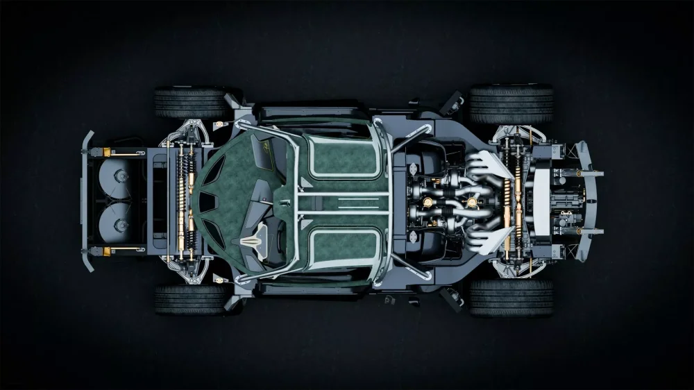 เพื่อที่หากเกิดอุบัติเหตุขึ้นมา ชิ้นส่วนก้อนระบบกันสะเทือนและระบบบังคับเลี้ยวด้านหน้า เช่นเดียวกับชิ้นส่วนแท่นระบบกันสะเทือนด้านหลัง ที่กลายเป็นแท่นเครื่องยนต์ ด้วยในเวลาเดียวกัน จะได้สามารถสลัดตัวออกจากโครงสร้างห้องโดยสารได้ง่าย ช่วยลดน้ำหนักที่จะทำให้เกิดแรงเหวี่ยง และเสี่ยงที่โครงสร้างห้องโดยสารจะไถลไปกระแทกสิ่งกีดขวางอื่นใดบนถนนเพิ่มเติม ซึ่งเป็นแนวคิดพื้นฐานในการสร้างรถไฮเปอร์คาร์อยู่แล้ว