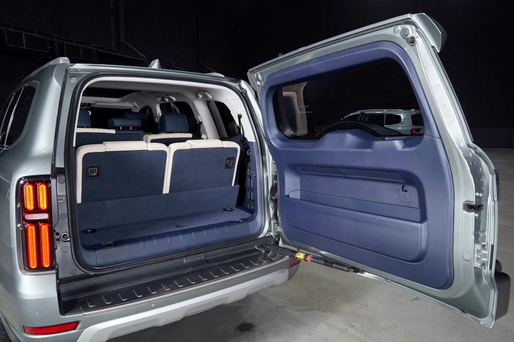 ส่วนด้านท้าย แปลกตาด้วยประตูบานใหญ่ที่เป็นแบบเปิดบานออกด้านข้าง พร้อมติดตั้งล้ออะไหล่ และใช้ฝาครอบที่มีกล้องมองหลังฝังอยู่ในตัว