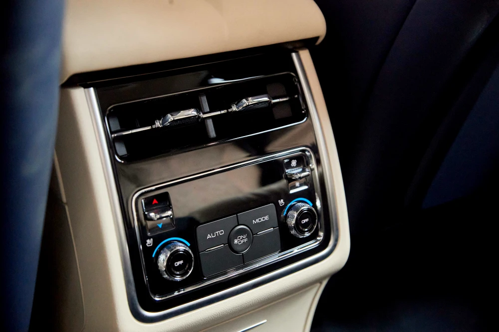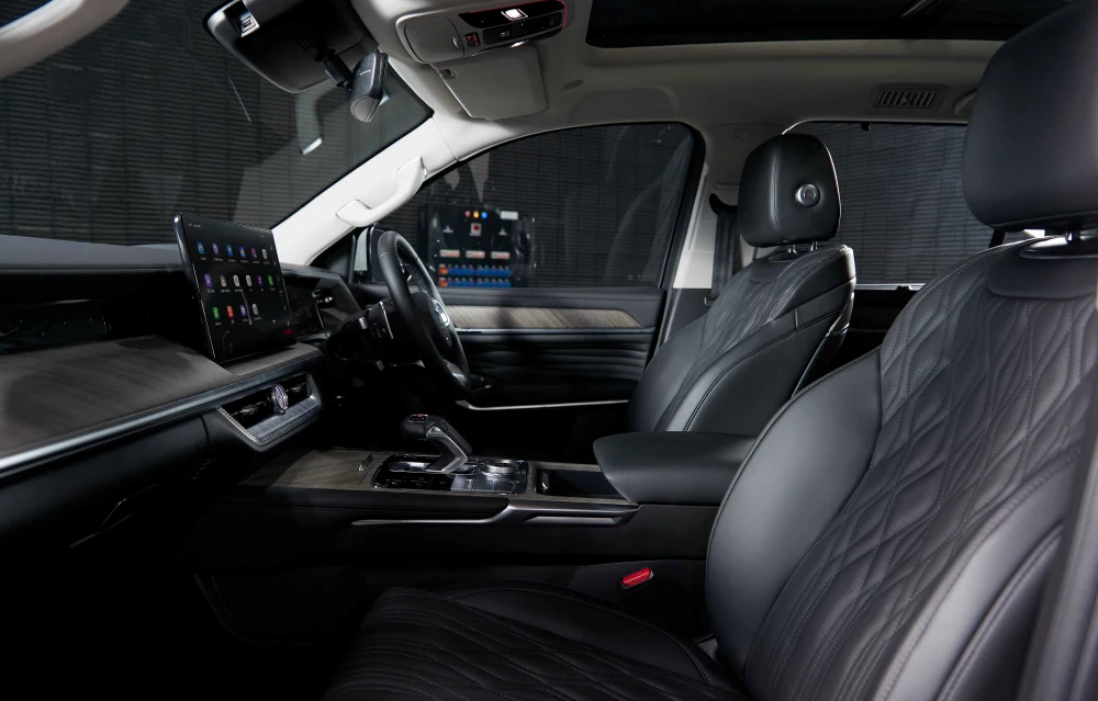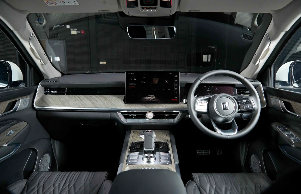 ชุดคอนโซลกลางเน้นคุมโทนเนี๊ยบ ด้วยขอบชิ้นงานผิวอลูมิเนียม และแผงลายไม้ เสริมด้วยจอมาตรวัดดิจิทัลขนาด 12.3 นิ้ว สีสันคมชัด และจอแสดงผลระบบอินโฟเทนเมนท์ขนาด 14.6 นิ้วตรงกลาง แล้วยังมีระบบแอร์รอบทิศทาง สำหรับผู้โดยสารทั้ง 3 แถว โดยที่ระบบแอร์สำหรับผู้นั่งในแถวสองยังเป็นแบบแยกฝั่ง ตามด้วยหลังคาแก้วขนาดใหญ่ เพื่อความโปร่งโล่งสบายในการนั่งโดยสารเข้ามาให้อีก