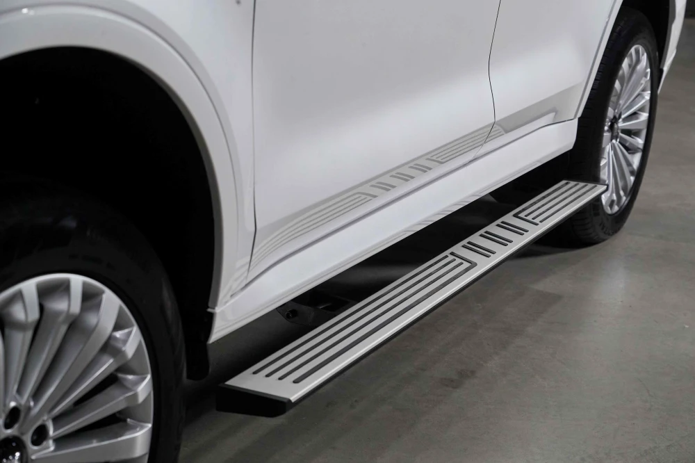 ขณะที่เส้นสายตัวถัง ตั้งแต่แนวฝากระโปรง หลังคา บานประตู ไปจนถึงด้านท้ายรถ ล้วนเต็มไปด้วยความเหลี่ยมสัน และบึกบึน แถมยังโดดเด่นด้วยชุดล้อขอบ 20 นิ้ว รัดด้วยยางขนาด 265/50 R20 และที่กลางลำตัวรถ ยังมีการติดตั้งบันไดพับไฟฟ้า ที่จะเปิดออกมาเมื่อมีการเปิดประตู และจะพับกลับ เมื่อมีการปิดประตู