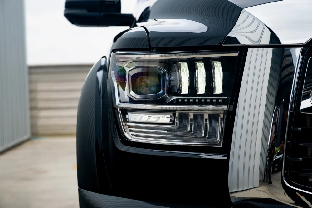 ในส่วนงานออกแบบรอบคัน เรียกได้ว่าใช้เส้นสายเดียวกันกับ TANK 500 ซึ่งเป็นรถอเนกประสงค์ที่ใช้พื้นฐานโครงสร้างเดียวกัน และแน่นอนว่าในเมื่อมันมาพร้อมกับภาพลักษณ์กึ่งลุยติดหรู มันจึงมีลูกเล่นต่างๆติดตัวมามากมาย ทั้ง ไฟหน้า LED อัจฉริยะ ซึ่งมาพร้อมกับลูกเล่นระบบเปิด-ปิดไฟหน้าอัตโนมัติ ระบบปรับไฟสูง-ต่ำอัตโนมัติ และฟังก์ชันหน่วงเวลาไฟส่องทางหลังดับเครื่องยนต์ (Follow Me Home) พร้อมระบบไฟส่องสว่างเวลากลางวันแบบ LED (DRL – Daytime Running Light) ระบบไฟตัดหมอกด้านหน้า-หลังแบบ LED (เฉพาะรุ่น 2.0T HEV ULTRA DOUBLE CAB AUTO 4WD) และระบบไฟท้ายแบบ LED