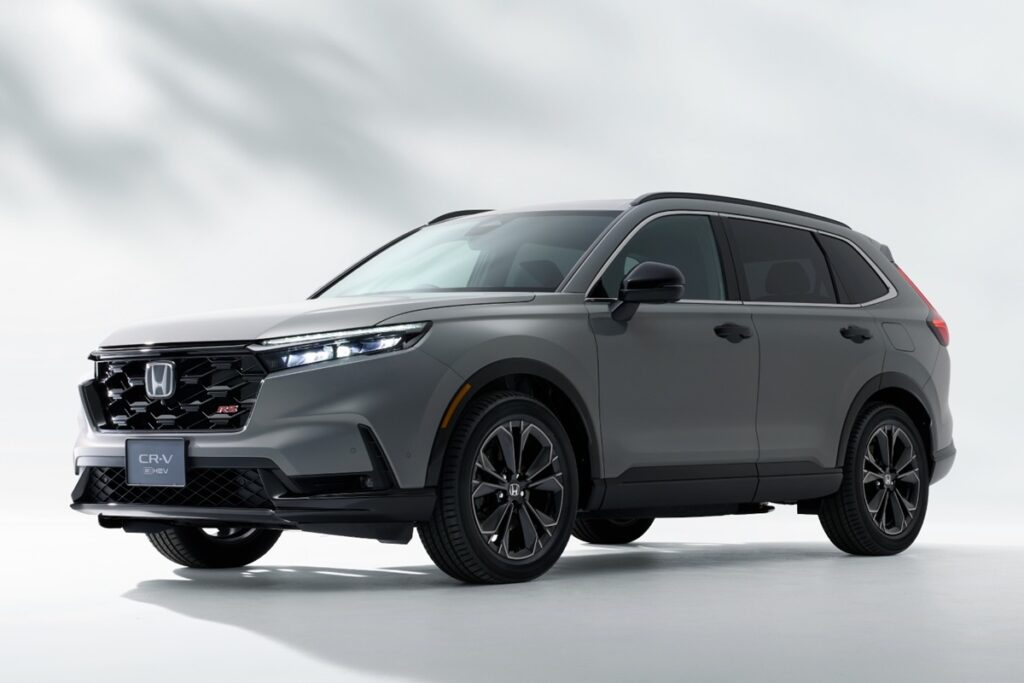 ดูผิวเผินก็คือ Honda CR-V e:HEV RS ที่คล้ายเวอร์ชันไทยแต่ไม่คล้ายไปเสียหมดเริ่มที่ ชุดแต่งเกือบทั้งคันมาแบบสีดำเงา Gross Black ตั้งแต่ กระจังหน้าดีไซน์พิมพ์นิยมพร้อมตรา RS กันชนหน้าทูโทน