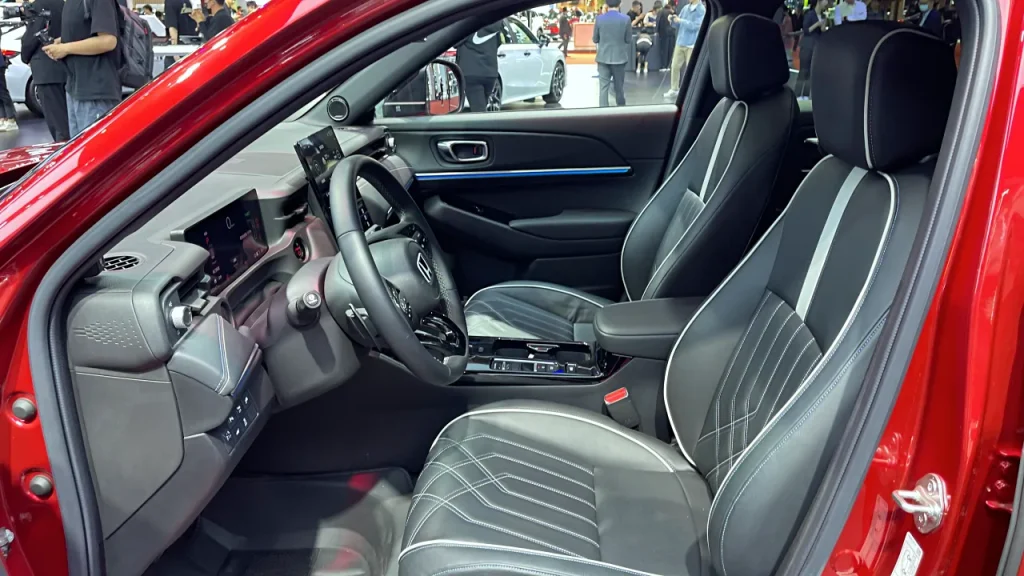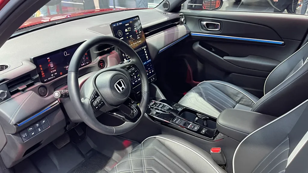 ในฝั่งผู้ขับ แม้จะใช้พวงมาลัยที่หน้าตาเหมือน HR-V แต่ทั้ง e:NS1 และ e:NP1 จะถูกเปลี่ยนชุดหน้าจอมาตรวัดใหม่ จากแบบกึ่งอนาล็อค-ดิจิตอล เป็นแบบฟูลดิจิตอล และติดตั้งแบบกึ่งลอยตัว