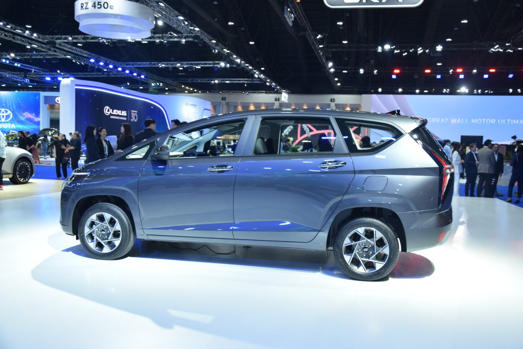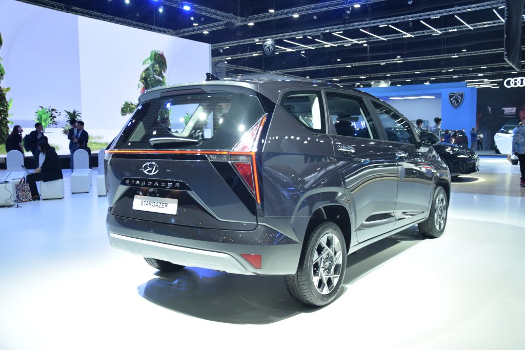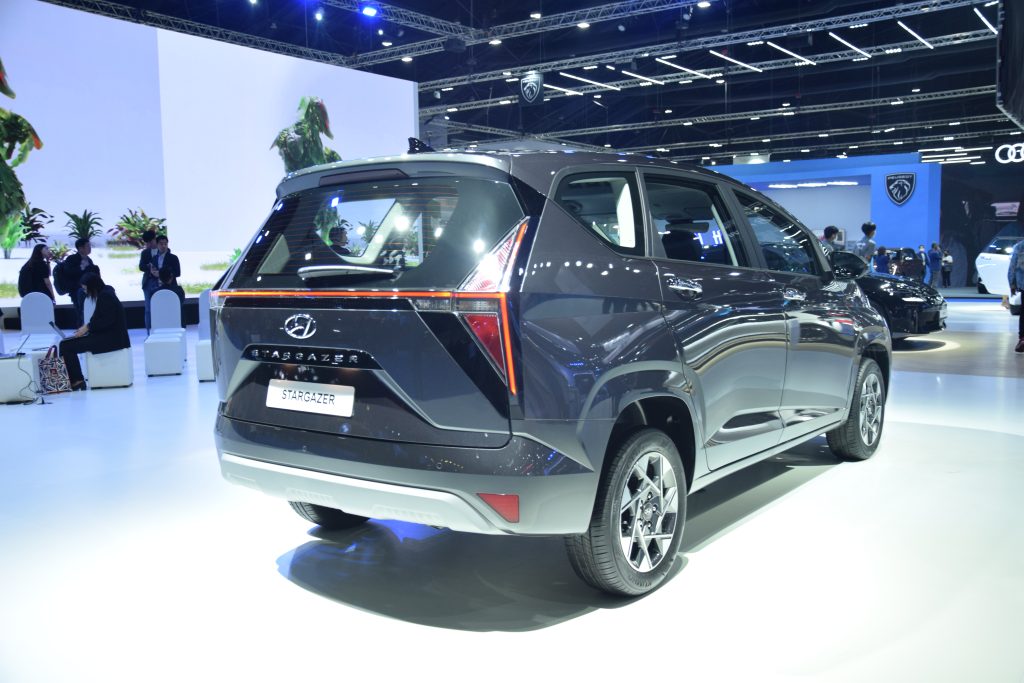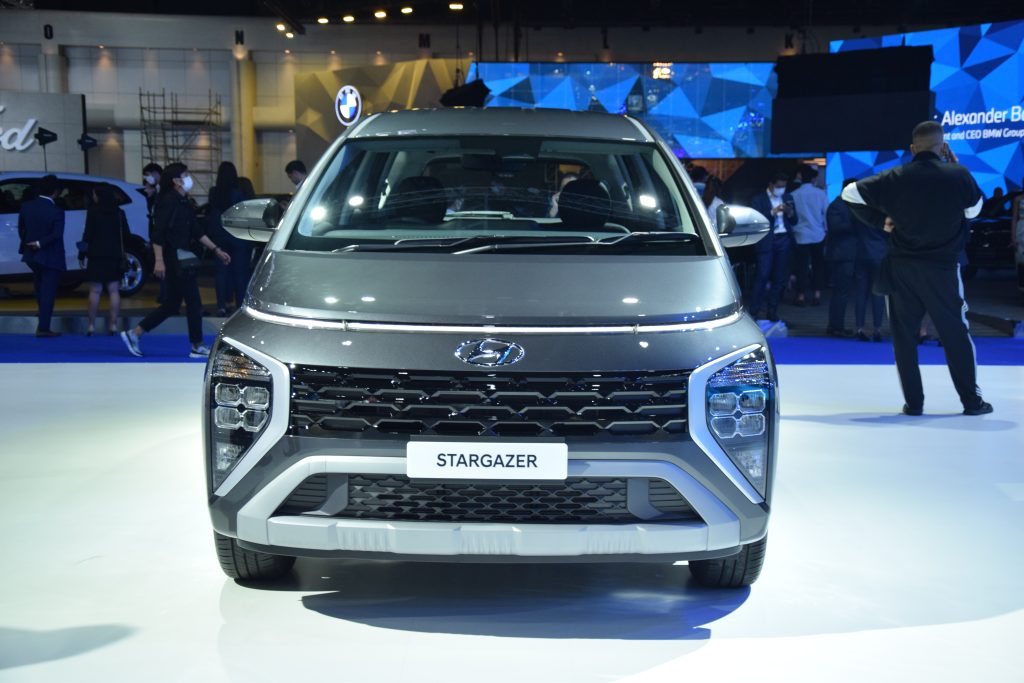 นั่นก็คือ Hyundai Stargazer Mini MPV นำเข้าจากอินโดนีเซียตั้งใจเพื่อมาฆ่าคู่แข่งโดยเฉพาะกับดีไซน์สไตล์หม้อทอดจาก Hyundai Staria เริ่มที่แถบไฟ LED Daytime ร้อมรอบเต็มคันถัดลงมาเป็น โลโก้ Hyundai ตัวใหญ่ พร้อมกระจังหน้าและช่องระบายอากาศเป็นหนึ่งเดียวขนาดใหญ่ แผงไฟหน้า LED แนวตั้ง ล้ออัลอลยลายทูโทนขนาด 15 นิ้ว ด้านท้ายมาพร้อมความโดดเด่นจากไฟท้าย LED รูปตัว H เชื่อมต่อกัน แปะโลโก้ Hyundai กับ ชื่อ Stargazer