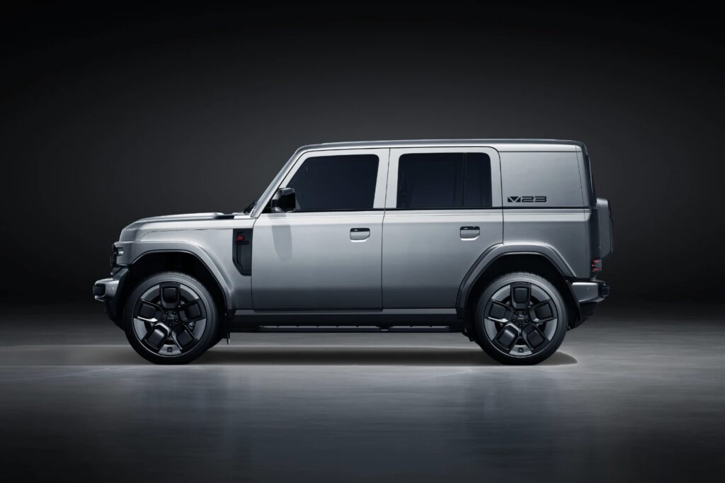 ด้านข้างดีไซน์เสา A-D เน้นความเหลี่ยมและหนักแน่นสร้างความโดดเด่นและดุดันให้กับตัวรถทรงกล่องสุดเท่ด้วย ช่องระบายอากาศแนวตั้งสีดำติดที่บังโคลนหน้าซ้าย-ขวา กระจกมองข้างทรงตั้ง ที่เปิดประตูแบบยกก้าน คิ้วขอบล้อทรง 4 เหลี่ยมดุดัน และเสา C กับ D มาในทรงทึบไม่มีกระจก