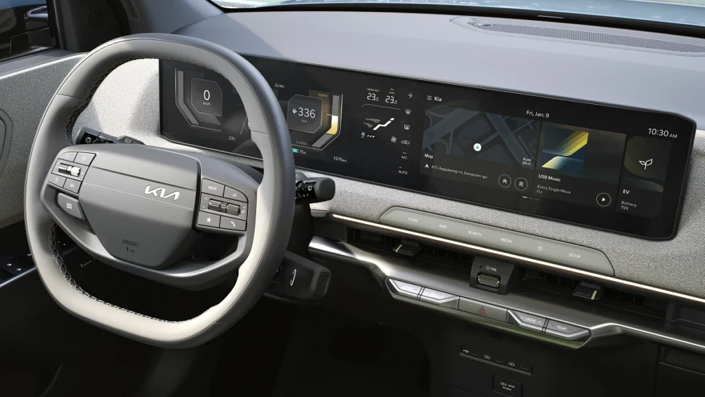 ชุดจอขนาด 12.3 นิ้ว 2 จอพร้อมอินเตอร์เฟซ สำตลฝืที่เรารู้จักยังถูกนำมาใส่ใน KIA EV 2