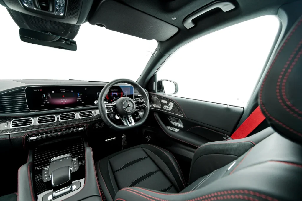 นอกจากนี้ ตัวรถ ยังมอบประสบการณ์การขับขี่ที่เหนือกว่าด้วยระบบปฏิบัติการ MBUX7 แบบ Zero-Layer Concept ที่ออกแบบมาตามรูปแบบโปรแกรม AMG ไม่ว่าจะเป็น หน้าจอธีมพิเศษของ AMG รวมถึงการวัดแทร็กสนาม โดยควบคุมผ่านจอกลางแบบ widescreen cockpit ขนาด 12.3 นิ้ว ที่เชื่อมต่อกับ AMG Head-up Display ขนาด 12.3 นิ้ว