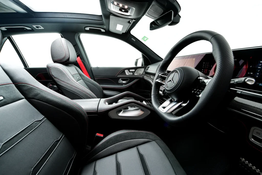 ส่วนภายในห้องโดยสารมาพร้อม AMG Interior Package เช่นกัน โดยเริ่มจาก พวงมาลัย AMG Performance steering wheel พร้อมระบบพวงมาลัย AMG Steering 3 สเตจ ติดตั้งเบาะนั่งหุ้มด้วยหนังและไมโครไฟเบอร์ หลังคากระจก Panoramic Sunroof ที่ช่วยเพิ่มความโปร่งสบายให้กับห้องโดยสาร