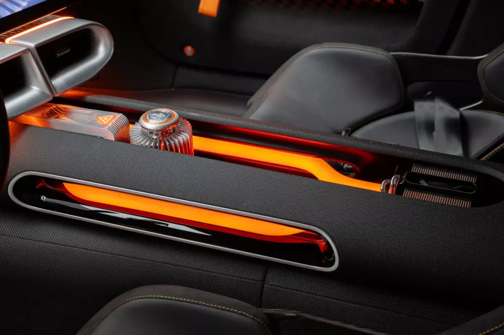 ด้วยความเป็นรถต้นแบบ ภายในห้องโดยสารจึงถูกตกแต่งด้วยความหวือหวาเต็มพิกัด ทั้งเบาะนั่งคาร์บอนแบบบัคเก็ทซีท ที่ถูกออกแบบโฟมรองรับแผ่นหลังและบั้นท้ายและต้นขา ให้รับกับตัวผู้นั่งอย่างดี ด้วยวิธีการแสกนลำตัวผู้นั่ง ซึ่งเป็นวิธีคิดเดียวกับการออกแบบเบาะนั่งสำหรับนักแข่งในการแข่งขันระดับโลก