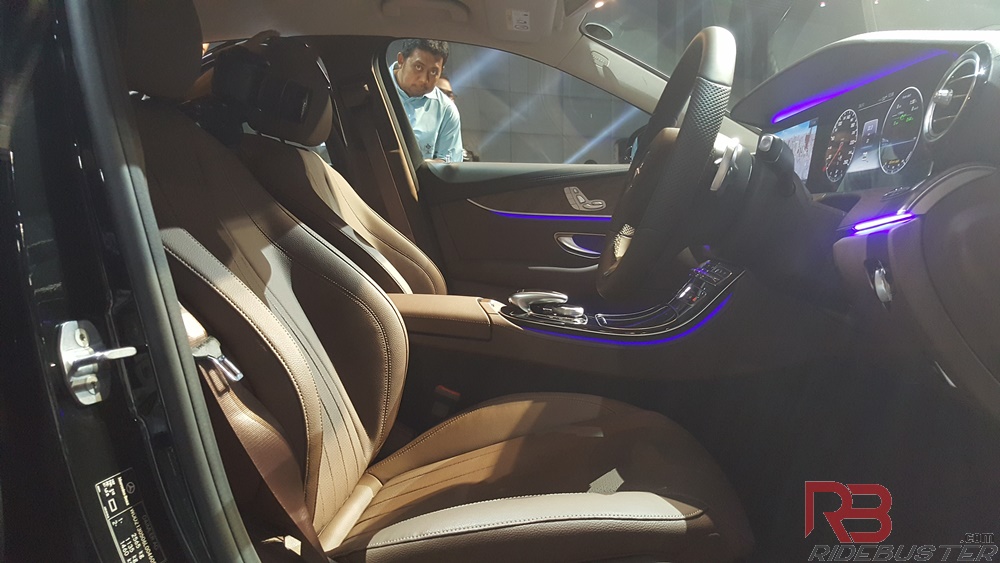 ภายในห้องโดยสาร Mercedes Benz E 350e ลงตัวด้วยความกว้างขวางโอ่อ่า และมันยังดูมีความทันสมัย ตัวเบาะให้สัมผัสความหรูหรา ด้วยการหุ้มหนัง Artico ในรุ่น Avantgarde และ Exclusive ส่วนในรุ่น AMG Dynamic มาพร้อมความลงตัวด้วยหนัง Nappa ตรงหน้าคนขับแสดงผลในการขับขี่ ด้วยชุดจอภาพแสดงผล ตรงกลางชุดจอจะแสดงการทำงานของระบบ Command Online ตอบการใช้งานรองรับการเชื่อมต่อจาก อุปกรณ์พกพา ทั้งระบบ Android Auto และ Apple Carplay