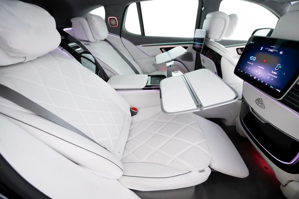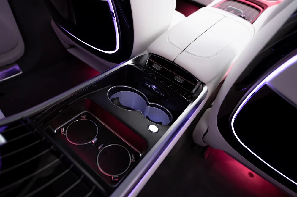 ฟีเจอร์สำหรับผู้โดยสารตอนหลัง ก็เป็นอีกสิ่งที่ Maybach ให้ความสำคัญ หรือเผลอๆอาจให้ความสำคัญมากกว่าเสียด้วยซ้ำ ด้วยชุดเบาะนั่งแบบแยกโซน มีคอนโซลกลางกั้นพื้นที่ชัดเจน พร้อมระบบนวดและที่รองน่อง แถมยังมีหมอนรองคอแยกมาให้อีก นอกจากนี้ ยังมีการติดตั้งตู้เย็นบริเวณด้านหลังที่เท้าแขนของผู้โดยสารตอนหลัง ความจุ 10 ลิตร พร้อมปุ่มควบคุมอุณหภูมิ (+7°C ถึง +1°C) ออกแบบพิเศษสำหรับแช่แชมเปญได้ 2 ขวด พร้อมที่วางแก้วแชมเปญสำหรับผู้โดยสารตอนหลัง