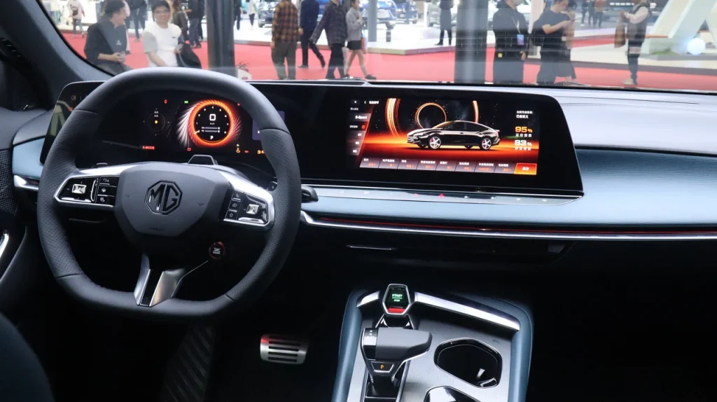 ทางด้านในห้องโดยสาร MG แนะนำงานออกแบบที่มีความลงตัวในสไตล์ สปอร์ต ด้วยงานออกแบบเป็นพิเศษ เริ่มจาก ตรงหน้าคนขับ จะมาพร้อม Dual Screen โดยจอคนขับมีขนาด 10.25 นิ้ว และจอระบบความบันเทิงและตั้งค่าต่างๆ ที่อยู่ตรงกลาง มีขนาด 12.3 นิ้ว