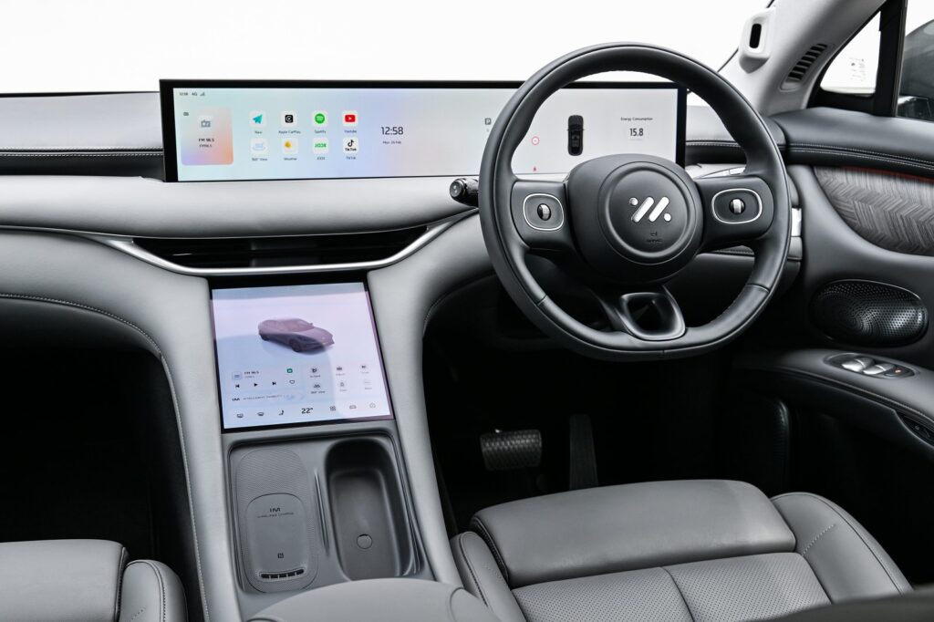 จออีกอันจะฝังไว้ในคอนโซลกลาง เป็นจอขนาด 11.9 นิ้ว ใช้ในการควบคุมฟังชั่นออพชั่นต่างๆ ตัวรถ ทั้งหมด ใช้หน่วยประมวลผล Qaulcomm Snap dragon 8295 ใช้งานสะดวกลื่นติดมือ