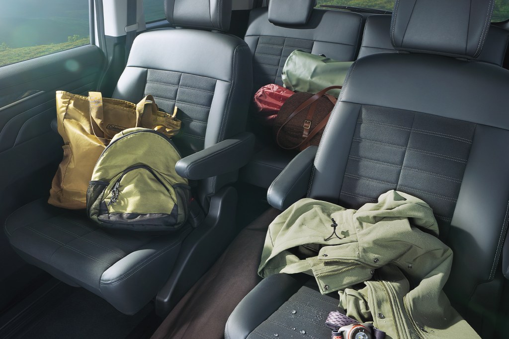 ภายเพิ่มออปชันทั้งกระจกมองหลังแบบตัดแสงอัตโนมัติพร้อมกล้องมองภาพรอบคันในตัวกระจก ชุดแป้นเบรกคันเร่งสีเงินอะลูมิเนียมพร้อมภายในมาแบบ 7 หรือ 8 ที่นั่ง คอนโซลหน้าออกแบบตามคอนเซ็ปต์ Horizontal Axis กับโทนสีเข้ม เบาะนั่งให้เลือกทั้งแบบผ้าพรีเมียมและหนังแท้กันน้ำเกาะ พวงมาลัยมัลติฟังก์ชัน 4 ก้าน มาตรวัดเรืองแสงกับจอแสดง MID 4.2 นิ้ว แหล่งรวมความสบายในชุดคอนโซลกลางทั้ง เครื่องเสียงพร้อมจอสัมผัสขนาดใหญ่ 10.1 นิ้ว เครื่องปรับอากาศอัตโนมัติ แยกอุณหภูมิ ซ้าย-ขวา คอนโซลเกียร์แนวตรงและเบรกมือไฟฟ้าพร้อมปุ่ม Auto Hold และตกแต่งพิเศษด้วยคอนโซลหน้าและแผงประตูหุ้มหนังสัมผัสดำเย็บสีเงิน ตกแต่งด้วยลายไม้ ไฟบนเพดานสีขาว และเบาะนั่งกึ่งหนังแท้กันน้ำเกาะ