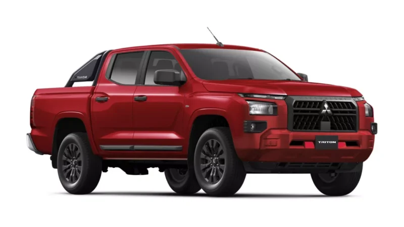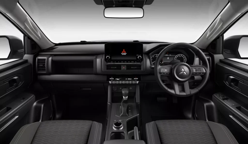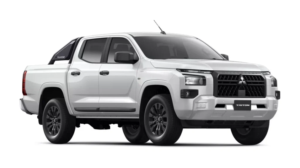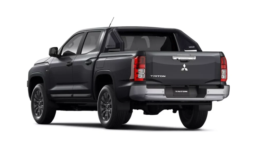 เพราะจากภาพที่เห็น เราจะพบว่ามันใช้ทั้งกระจังหน้า กันชนหน้า และกรอบไฟตัดหมอก ที่เหมือนกับ Triton Single Cab 2.4 Pro 4WD ทุกประการ แม้แต่แถบพลาสติกกันกระแทกที่ชายล่างประตูก็ยังคงมีมาให้เช่นกัน แค่มีให้ในส่วนของบานประตูคู่หลังเสริมเข้ามาด้วย โดยที่ระบบไฟส่องสว่างภายนอกทั้งหมด ก็จะใช้ระบบไฟหลอดฮาโลเจน ไม่มีส่วนใดที่เป็นหลอดไฟ LED เลยแม้แต่จุดเดียว