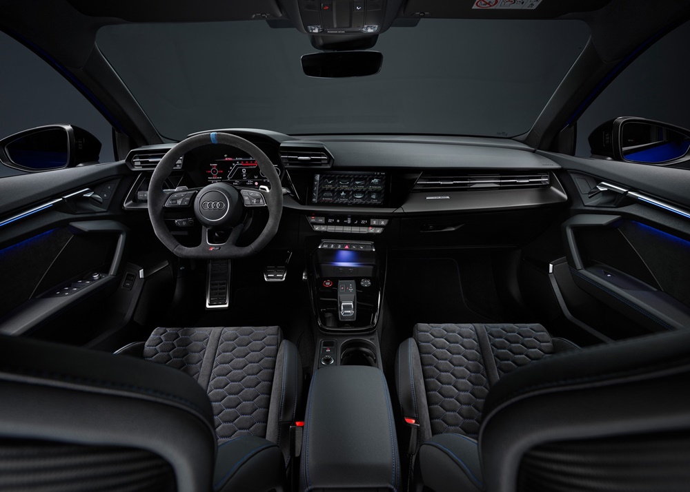 ส่วนงานตกแต่งภายในเอง ก็ไม่ได้มีความแตกต่างไปจาก RS3 รุ่นปกติเท่าไหร่นัก ไม่ว่าจะเป็นงานออกแบบคอนโซล ดีไซน์พวงมาลัย หรือแม้กระทั่งชุดเบาะนั่ง