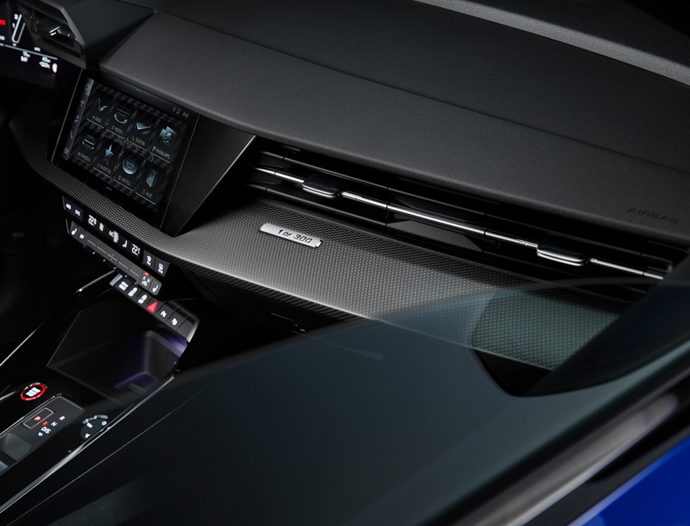 แต่ในเชิงรายละเอียดแล้ว การเย็บงานหุ้มหนังต่างๆ จะใช้ตะเข็บด้ายสีน้ำเงิน เช่นเดียวกับโทนของแสงไฟแวดล้อมภายในห้องโดยสาร และที่ขาดไม่ได้คือ การเปลี่ยนเพลทโลโก้ “Quattro” บนคอนโซลฝั่งผู้โดยสารฝใหม่ ให้กลายเป็นเพลทลำดับการผลิต “XXX/300” แทน แล้วยังมีการเพิ่มไฟส่องพื้นตอนเปิดประตู ที่เปลี่ยนกราฟฟิกเป็นคำว่า “RS Permance” รวมถึงการเปลี่ยนพื้นหลังของจอแสดงผลระบบอินโฟเทนเมนท์ขนาด 10.1 นิ้ว ให้เป็นลายคาร์บอนอีกด้วย