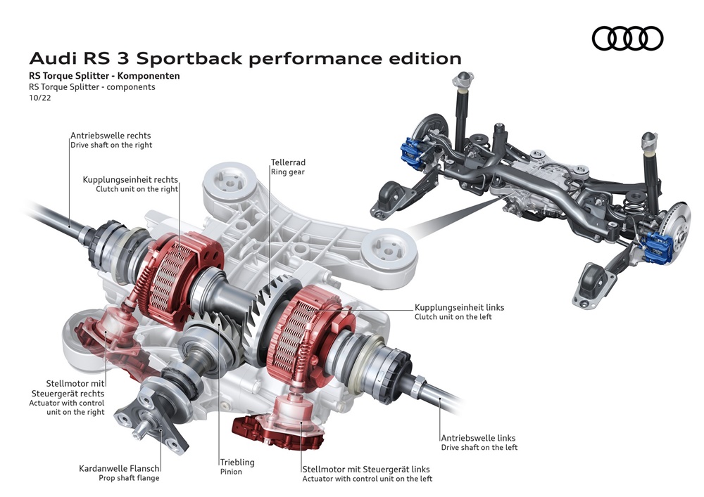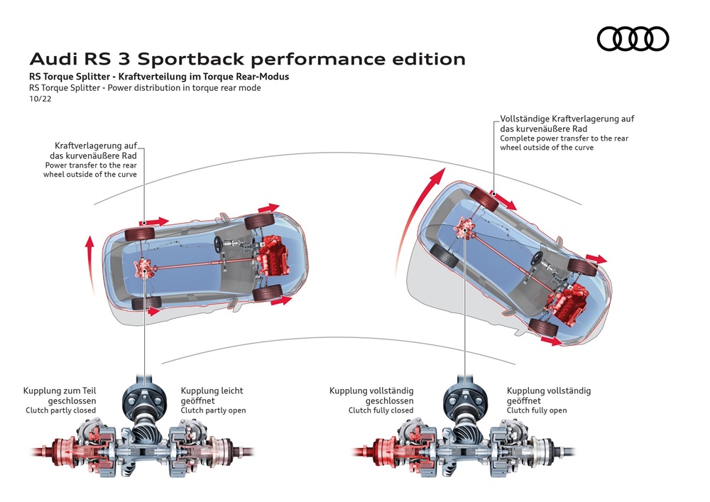 ฝั่งระบบส่งกำลังของมัน ก็ยังคงเป็นแบบชุดเกียร์อัตโนมัติคลัทช์คู่ 7 สปีด โดยมีระบบขับเคลื่อน 4 ล้อ Quarttro พร้อมระบบ Torque Splitter เป็นหัวใจสำคัญอีกเช่นเคย แต่นั่นก็เพียงพอแล้วที่จะทำให้มันสามารถเรียกอัตราเร่งจาก 0-100 กิโลเมตร/ชั่วโมง ได้ภายในเวลา 3.8 วินาที และความเร็วสูงสุดอีก 300 กิโลเมตร/ชั่วโมง ทว่าลูกค้าจะต้องซื้อรถพร้อมกับแพ็คเกจปลดล็อค RS Plus Dynamic ก่อนเท่านั้น
