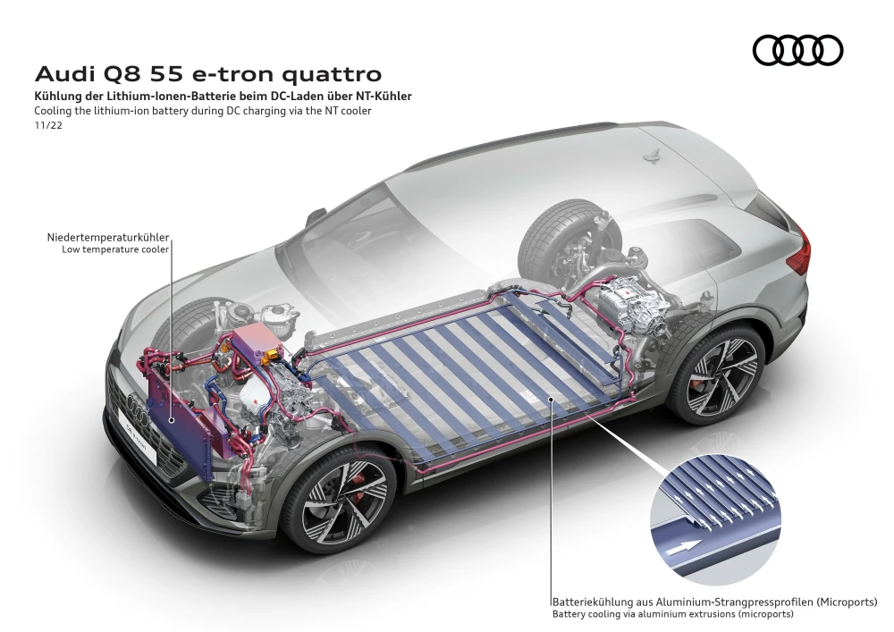- Q8 e-tron 50 quattro – กำลังสูงสุด 340 แรงม้า / 664 Nm ระยะทางวิ่งไฟฟ้า 530 km.