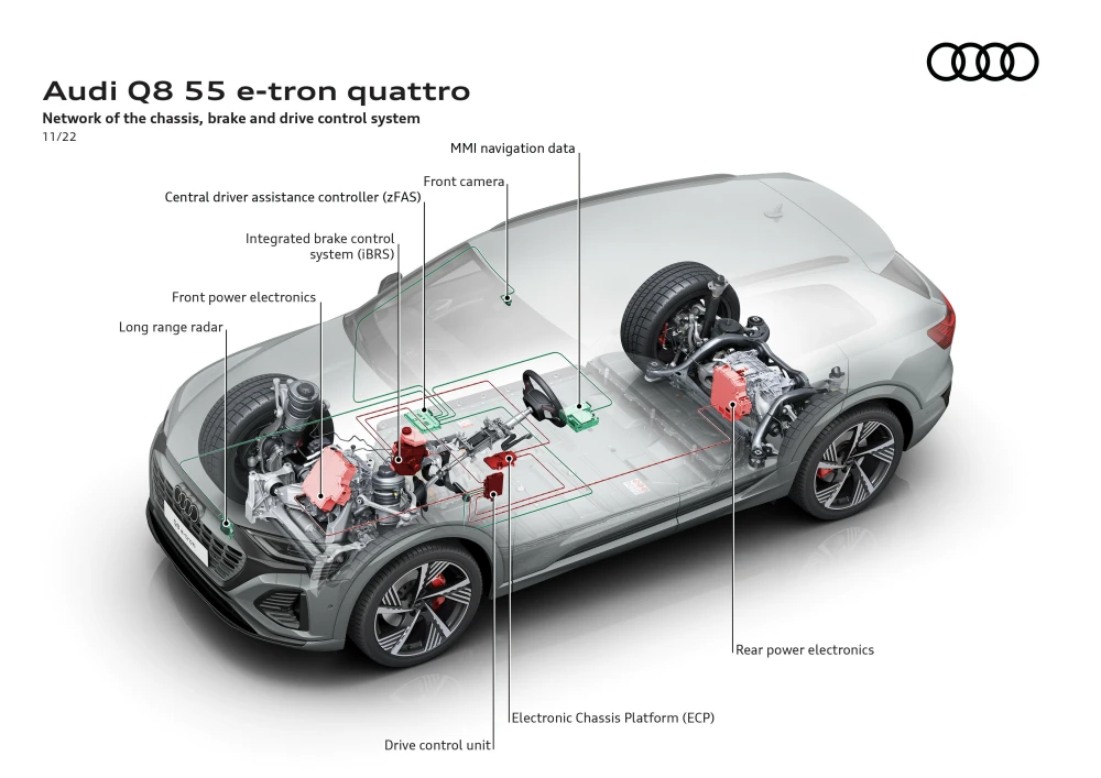 และถึงแม้เป็นรถไฟฟ้าก็ไม่ทิ้ง DNA ความขับสนุก Handling ที่แม่นยำ เกาะถนน พร้อมระบบขับเคลื่อน e-quattro และช่วงล่างแบบ Sport ที่เป็น New Generation เทคโนโลยีล่าสุดของระบบขับเคลื่อนสี่ล้ออัจฉริยะที่เป็น DNA ของอาวดี้ รวมถึงความปลอดภัยที่เป็นจุดเด่นในเรื่อง Performance