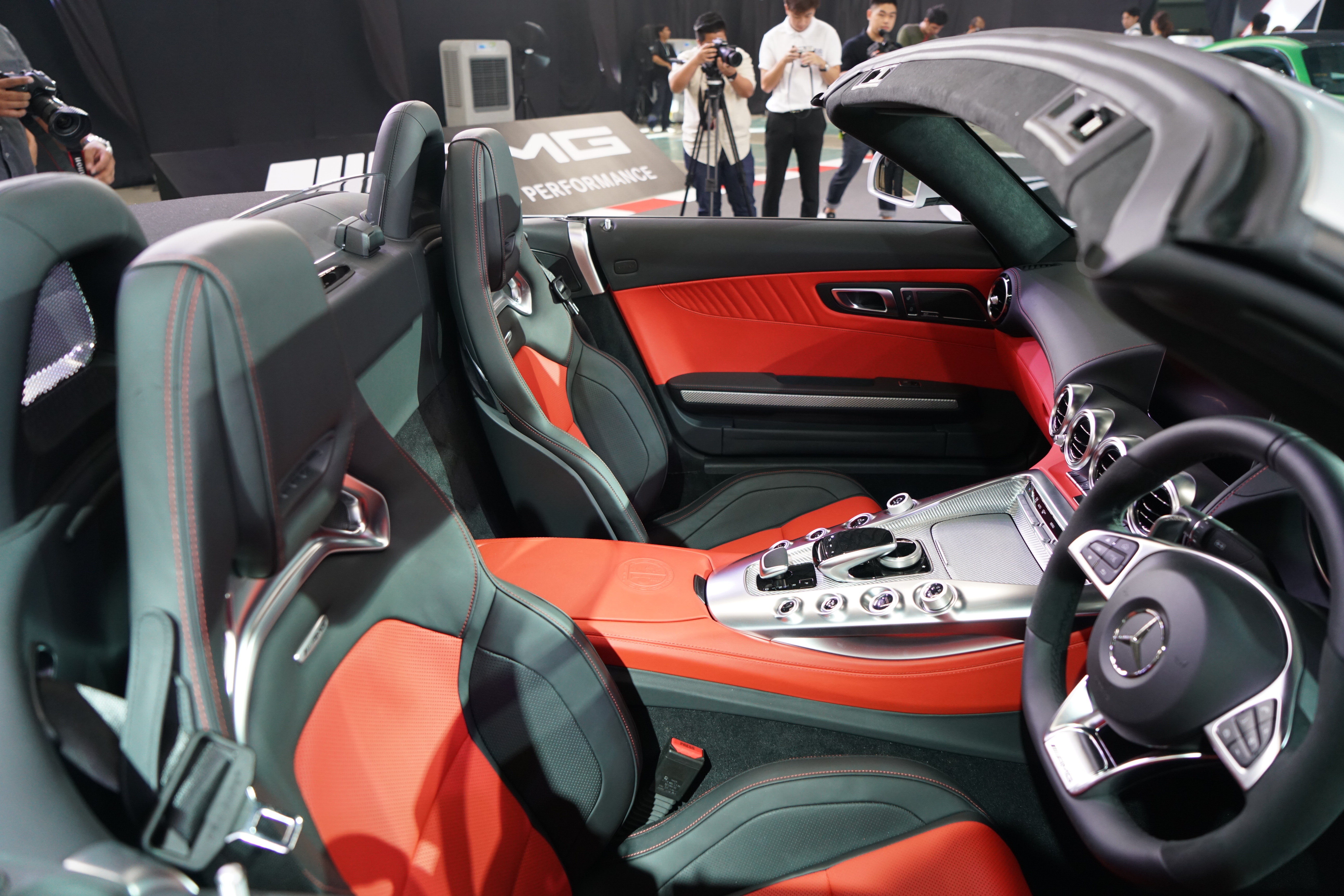 ดีไซน์ภายในมาพร้อมกับเบาะหนัง Nappa ที่อยู่ต่ำกับพวงมาลัยหุ้มหนังและ เส้นใย DINAMICA Microfibre แล้วยังทีออปชั่นเป็นชุดเบาะเสริมแบบเอเอ็มจีเพอร์ฟอร์มานซ์ ที่สามารถปกป้องร่างกายของผู้ขับขี่และผู้โดยสารทั้งด้านหน้าและด้านหลังได้มากขึ้นด้วยพนักพิงหลังที่มีความโค้งและเสริมด้วยวัสดุเพื่อความนุ่มสบายที่ด้านข้างมากกว่าเบาะที่นั่งแบบมาตรฐาน อีกทั้งยังติดตั้งระบบให้ความอบอุ่นบริเวณช่วงคอแบบ AIRSCARF และระบบทำความเย็นให้กับเบาะสำหรับการขับขี่แบบเปิดประทุนทั้งในฤดูร้อนและฤดูหนาว โดยผู้โดยสารสามารถปรับเลือกอุณหภูมิของระบบทำความร้อนและความเย็นได้ 3 ระดับ