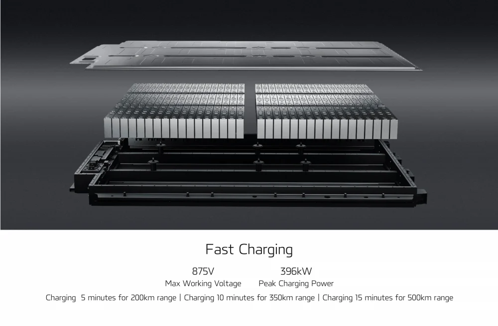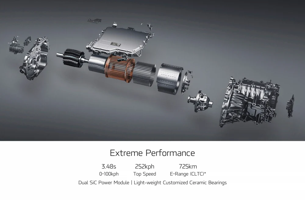 รุ่นแบตเตอรี่ 800V SiC Platform สถาปัตยกรรม 800 โวลท์ พร้อมมอเตอร์ไฟฟ้า Ultra Performance Mg-Al Alloy Hurricane Motor