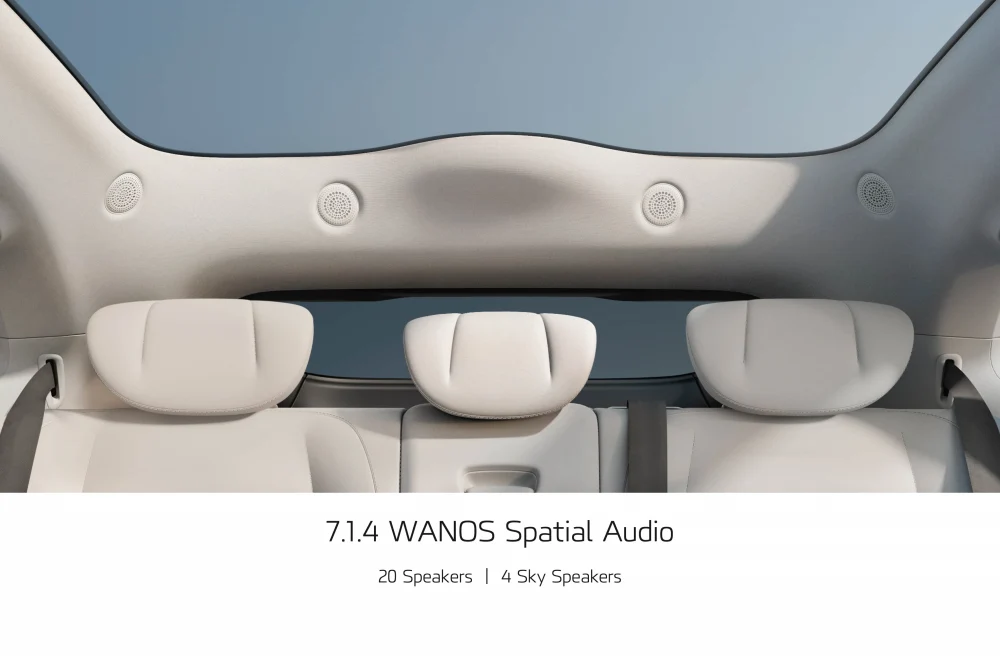 ไม่เพียงเท่านั้น งานออกแบบภายในห้องโดยสาร ยังเน้นความโปร่งโล่งสบาย ด้วยบานกระจกรอบคันขนาดใหญ่ ไม่เว้นแม้แต่หลังคาพาโนรามิคกลาสรูฟ ชุดคอนโซลเน้นงานออกแบบกึ่งมินิมอล ตกแต่งด้วยเส้นสายแบบโค้งมน และให้หน้าจอแสดงผลถึง 3 จอด้วยกัน ได้แก่ หน้าจอฝั่งผู้ขับขนาด 26.3 นิ้ว ซึ่งอันที่จริงจะพาดยาวไปถึงตรงกลางของคอนโซลหน้า และมีชุดจอขนาด 15.5 นิ้วอีกหนึ่งจอฝั่งผู้โดยสาร โดยจอทั้งสองชุดนี้จะเชื่อมต่อเข้าด้วยกันเป็นแผ่นเดียว และยังสามารถสไลด์ขึ้น หรือลงไปเก็บซ่อนไว้ในแนวคอนโซลหน้าได้อีกด้วยหากต้องการ และทำงานร่วมกับชุดลำโพง 20 ตำแหน่ง โดยมีลำโพงอยู่ 4 ตำแหน่งติดตั้งบริเวณกรอบหลังคารอบห้องโดยสารด้วย
