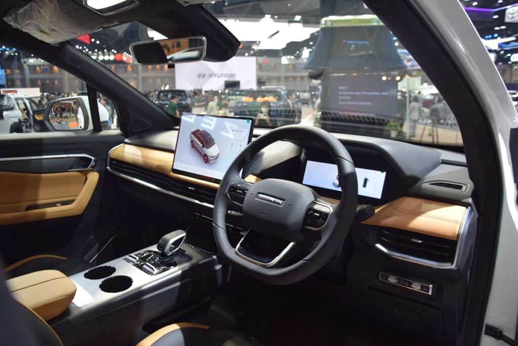 คอนโซลหน้าตกแต่งหุ้มหนังสัมผัสพร้อม มาตรวัดความเร็วดิจิทัล Full LCD ขนาด 10.2 นิ้ว จอสัมผัส Infotainment ขนาด 14.6 นิ้ว รองรับการสื่อสารแบบสั่งงานด้วยเสียงทั้งภาษาอังกฤษและภาษาไทยรองรับ Apple CarPlay และ Android Auto พวงมาลัยมัลติฟังก์ชัน 3 ก้านทรงท้ายตัดหุ้มหนังจับกระชับมือ