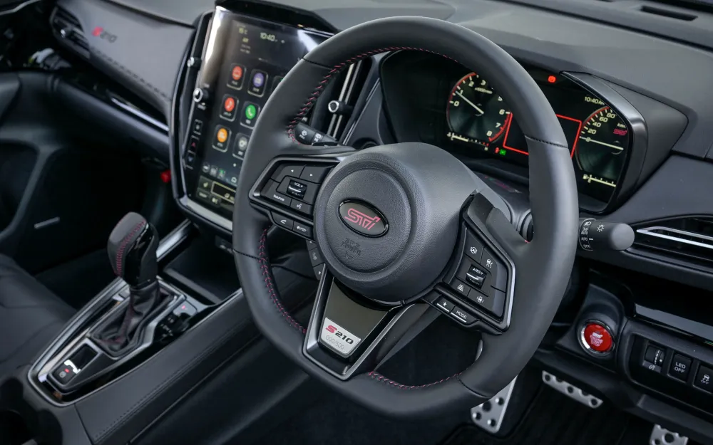 ภายในห้องโดยสาร เปลี่ยนหนังหุ้มก้านพวงมาลัยใหม่ให้ผู้ขับสามารถจับได้อย่างกระชับมากขึ้น, หนังหุ้มคันเกียร์เดินตะเข็บด้ายสีแดง, ปุ่มสตาร์ทรถสีแดงพร้อมโลโก้ STi, เบาะนั่งคู่หน้า 2 ท่อน หลังแข็งแบบ Semi-Bucket Seat งานคาร์บอน พร้อมระบบปรับไฟฟ้า 8 ทิศทาง จาก Recaro, ตกแต่งภายในด้วยโทนสีดำ แต่ใช้เข็มขัดนิรภัยสีแดง และไม่ลืมที่จะแปะเอมเบลม S210 ตามส่วนต่างๆของคอนโซลหน้า แผงข้างประตูเข้าไป เพื่อบ่งบอกความพิเศษของตัวรถ