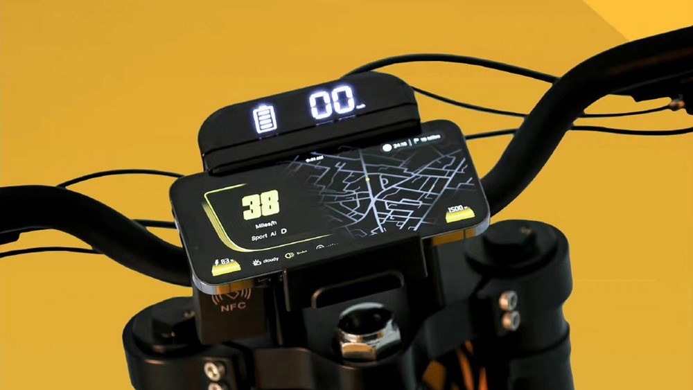 ที่โดดเด่นยิ่งกว่าคือ เจ้ารถจักรยานไฟฟ้าคันนี้ ยังมาพร้อมกับหน้าจอแสดงผลแบบฟูลดิจิตอล ที่สามารถแสดงผลได้ทั้งความเร็ว ปริมาณพลังงานคงเหลือ และยังสามารถเชื่อมต่อกับโทรศัพท์มือถือ เพื่อเป็นตัวเปิดใช้งานรถจักรยานผ่านระบบ NFC หรือจะเอาไว้เชื่อมต่อกับระบบ GPS เพื่อเปิดแผนที่บนหน้าจอดังกล่าวก็ยังได้