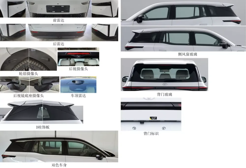 นอกนั้นในส่วนของแนวหลังคา จะมีการออกแบบให้ดูสูงโปร่งเล็กน้อย และทำสีบริเวณเสาหลังคาให้ตัดโทนกับหลังคาและตัวถังในลักษณ์งานออกแบบ แบบ Floting Roof ซึ่งเมื่อมองในภาพรวมแล้ว มันกลับให้ความรู้สึกเหมือน Toyota Fortuner อยู่พอสมควร ด้วยการออกแบบสันไหล่ตัวถังช่วงซุ้มล้อหลังให้เชิดขึ้นมาบีบกรอบกระจก และการวาดเส้นหลังคาให้ลาดลงมาเล็กน้อยตั้งแต่แนวหลังเสา C ลงมา และขณะเดียวกันยังมีการใช้งานออกแบบช่องดักลมที่กันชนหน้าให้มีลักษณะเหมือนกับของ Toyota Camry อีกด้วย เพื่อความเพิ่มความสปอร์ตเล็กๆให้กับตัวรถ