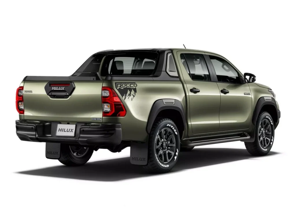 Toyota Hilux Revo Rocco ร่างสเป็คส่งออกไปวางจำหน่ายในประเทศญี่ปุ่น แท้จริงแล้วก็มีหน้าตาที่เหมือนกับตัวรถในบ้านเราเกือบทุกประการ ด้วยการใช้กันชนหน้าที่ดูแข็งแกร่ง ตั้งแต่กระจังหน้ายันชายล่างสีเงิน กรอบโคมไฟตัดหมอกสีควัน คิ้วซุ้มล้อสีดำ ตัดโทนด้วยการแผ่นขลิบตำแหน่งเหนือล้อสีควัน กรอบกระจกมองข้างสีดำเมทัลลิค, สปอร์ตบาร์ที่กระบะหลังพร้อมไฟเบรกดวงที่ 3, และชุดล้อขอบ 18 นิ้ว สีดำล้วน รัดด้วยยาง A/T ซึ่งทั้งหมดช่วยส่งให้ตัวรถดูดุดัน บึกบึน พร้อมลุย เสริมภาพลักษณ์ของผู้ใช้ได้เป็นอย่างดี