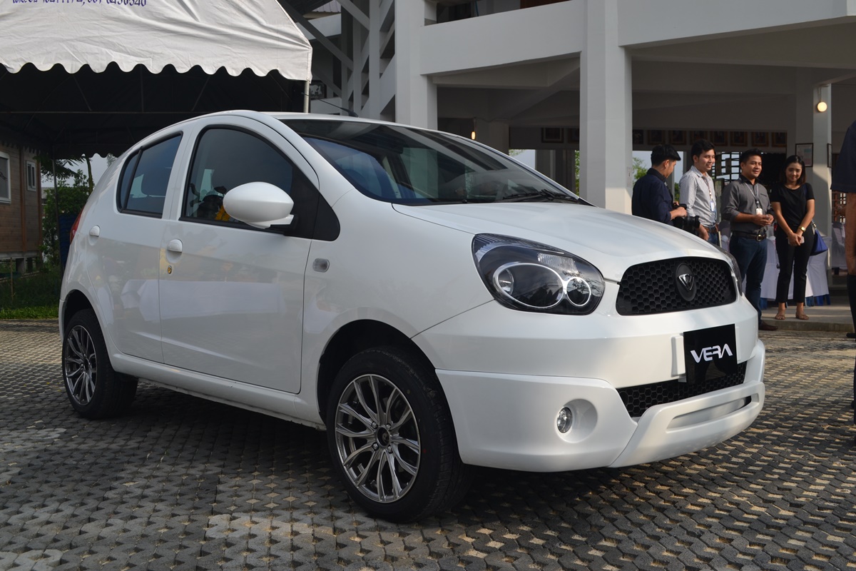 VERA V1 นำพื้นฐานรถ Hatchback 5 ประตู (Geely) นำเข้ามาจากเมืองจีน ออกแบบพัฒนา รูปลักษณอาจคล้ายคลึงรถ Eco-Car ตั้งแต่ กระจังหน้าแบบตะแกรงสีดำ พร้อมโลโก้ VERA ไฟหน้ามัลติรีเฟล็กเตอร์รมดำ ซ่อนความสปอร์ตไปอีกระดับ รวมถึงกันชนหน้าและไฟตัดหมอก ล้ออัลลอยลายหรูขนาด 15 นิ้ว มีให้เลือกถึง 2 สี ทั้งสีดำ Hyper Black และ สีเงิน Hyper Sliver