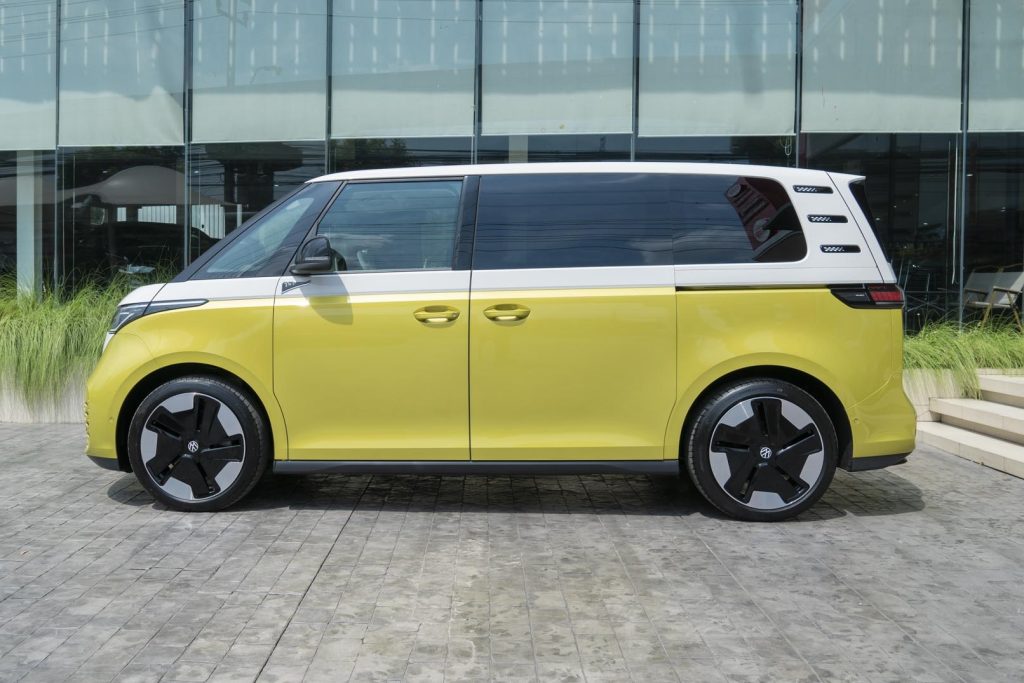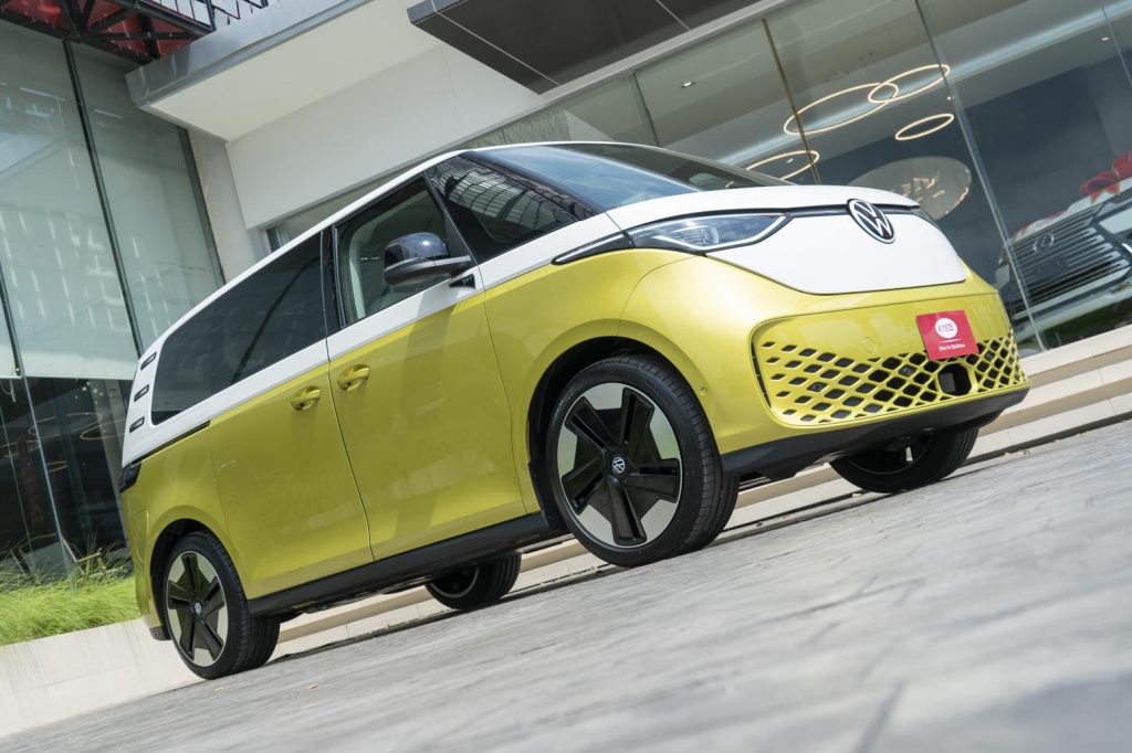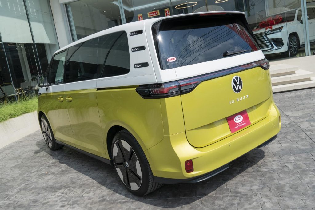 ทาง ETON Group ผู้นำเข้ารถยนต์อิสระจากทั่วโลกสั่ง Volkswagen ID. Buzz เข้ามาขายในไทย ด้วยความพิเศษที่ดีไซน์ตัวรถมีความคลาสสิกจากบรรพบุรุษ Volkswagen T1 หรือ T2 ผสมความเป็นอนาคตเข้าด้วยกันอย่างลงตัวยังคงใช้สีตัวถังแบบทูโทน ซึ่งเป็นเอกลักษณ์ ฝากระโปรงหน้ารูปตัว V กว้าง โลโก้ VW ขนาดใหญ่ ไฟหน้า LED แบบ Matrix LED Combination ไฟท้ายแบบเรียวยาวมาพร้อมแถบไฟ LED ที่เชื่อมต่อกันลากยาว 2 ฝั่ง ประตูเปิดเข้าห้องโดยสารด้านหลังเป็นแบบบานไลด์ทั้งสองข้าง ล้ออัลลอย “Bromberg” in black diamond ขนาด 21 นิ้ว โดยสร้างบนพื้นฐานใหม่ Modular Electric Drive Kit (MEB Platform)