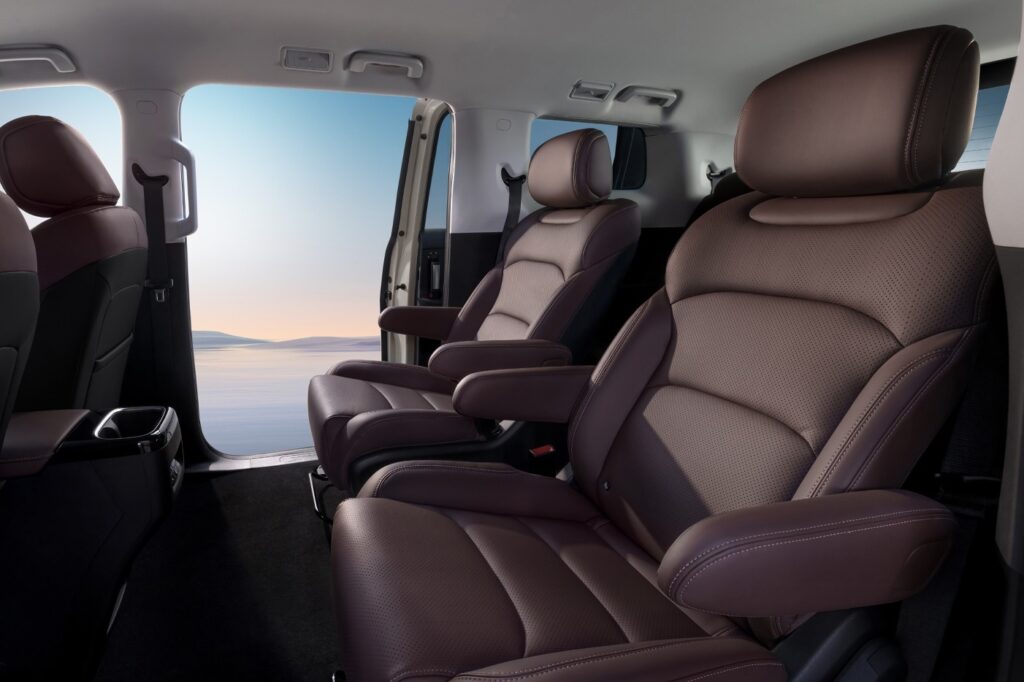 ภายในหรูหราและสบาย 7 ที่นั่ง 2+2+3 เบาะนั่งด้านหน้าปรับไฟฟ้าและยังปรับเอนได้สูงสุด 180 องศา เบาะนั่งตอนที่ 2 แบบ Captain Seat ปรับเอนได้ พร้อมเบาะแถวที่ 3 พับเก็บแบบพิเศษ (Magic Folding) 60/40 เอนได้สูงสุด 127 องศา พร้อมพื้นที่ด้านท้าย 315 ลิตรในกรณีไม่พับเบาะแต่ถ้าพับแล้วขยายพื้นที่มากถึง 1,202 ลิตร มีช่องเก็บของมากถึง 25 จุด