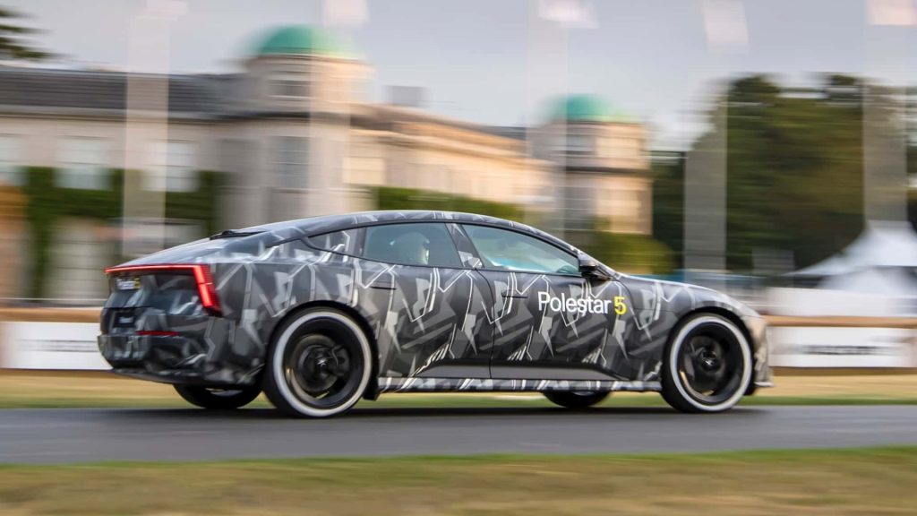 ขุมพลังไฟฟ้านั้นให้กำลังมากถึง 884 แรงม้า แรงบิด 900 นิวตันเมตรมาแบบมอเตอร์ไฟฟ้าคู่ขับเคลื่อนสี่ล้อ วิ่งไกลสุด 600 กม./ชาร์จหนึ่งครั้งและอาจมีเวอร์ชันมอเตอร์ไฟฟ้าเดี่ยวขับเคลื่อนล้อหลังตามมา Polestar 5 ออกแบบและพัฒนาที่ศูนย์ R&D ในอังกฤษ โดยจะเปิดตัวจริงเวอร์ชัน Production Car ช่วงปี 2024