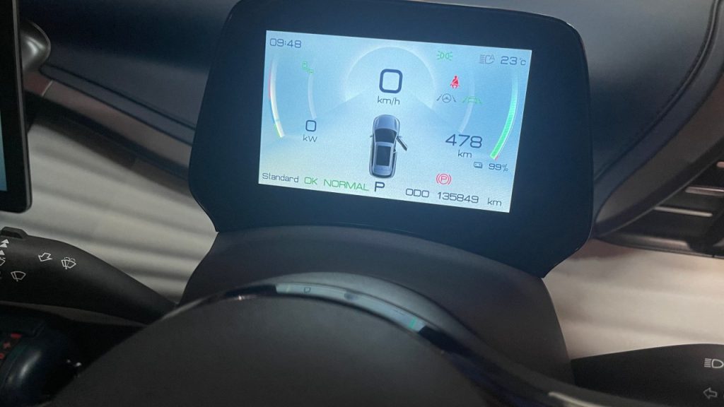 แต่เรื่องความสึกหรอ ของรถยนต์ไฟฟ้าที่ใช้มานาน คงหนีไม่พ้นในแบตเตอรี่ ซึ่งเราได้ขับออกจากจุดชาร์จที่สุรินทร์ ด้วยปริมาณไฟฟ้า 93 % มีระยะเดินทางตามคำนวนให้วิ่งได้บนหน้าจอ 451 ก.ม. ซึ่งดูแล้ว ก็ไม่ใช่ระยะที่เพี้ยนจากเดิมเท่าไหร่นัก