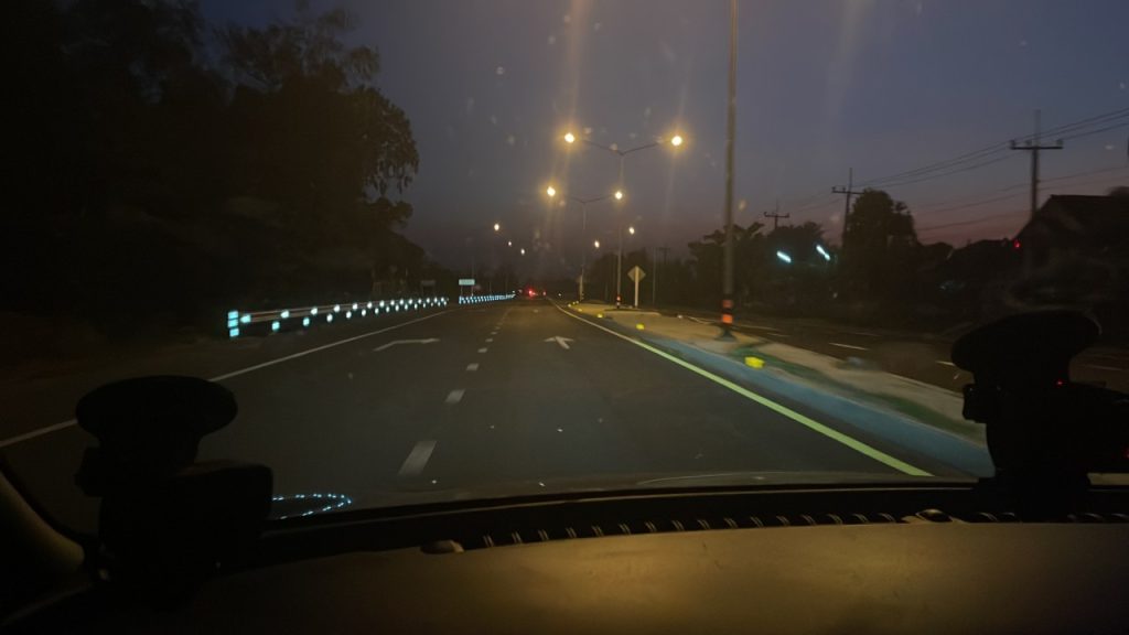 เส้นทางของเราไม่ได้ใช้ เส้นทางปกติสาย 24 แต่ใช้เส้นข้างใน สาย 226 แล้ว มาต่อ สาย 294 ฟังดู ก็ไม่มีปัญหา อะไร นอกจากทางที่มืดมิด แต่เมื่อขับมาสักพัก ปรากฏว่า มีการทำถนน อยู่ต่อเนื่องเป็นระยะ รถมีการสะเทือนอยู่ตลอดเวลา