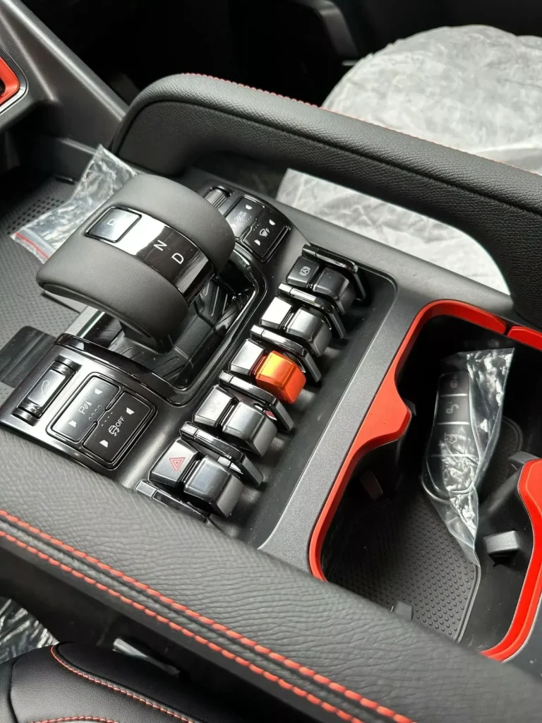 แต่ทั้งนี้ เพื่อให้รถยังมีความเป็น BYD อยู่บ้าง ทางดีไซน์เนอร์จึงได้มีการออกอแบบชิ้นส่วนคอนโซลกลางใหม่ ให้เป็นแบบเฉพาะตัว ด้วยช่องแอร์แบบวางตำแหน่งใต้แนวจออินโฟเทนเมนท์ (คล้าย Atto 3), ราวจับแบบขนานไปตามแนวคอนโซลกลาง, หัวเกียร์ไฟฟ้าแบบป้าน และออกแบบปุ่มเปิด/ปิด การทำงานขอองระบบต่างๆเฉพาะรุ่น แต่ยังไม่วายจะใช้ปุ่มเปิดระบบไฟผ่าหมาก, โหมดการขับเคลื่อนแบบ EV Drive, และอื่นๆ แบบเดียวกับเครื่องบินรบ ซึ่งเป็นแรงบันดาลใจที่มาคล้ายกันกับ Ford Ranger Raptor รุ่นปัจจุบันอีกด้วย