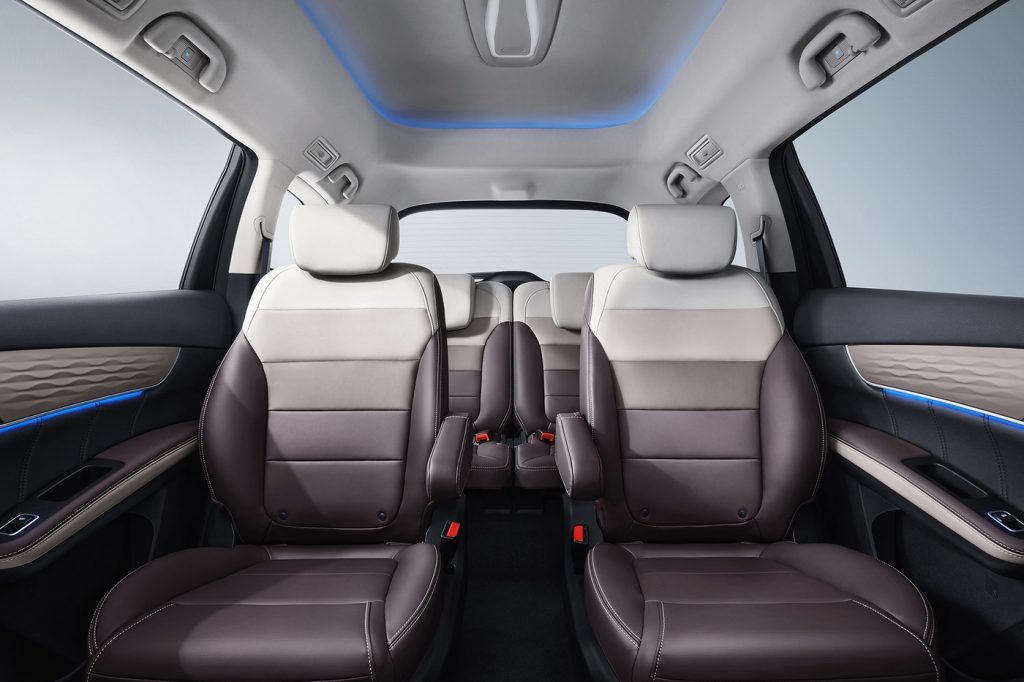ภายในหรูแบบสามตอนทั้งแบบ 6 ที่นั่ง 2+2+2 หรือ 7 ที่นั่ง 2+3+2 เบาะนั่งตอนที่สามสามารถพับเก็บได้เพื่อเพิ่มพื้นที่ในการขนสัมภาระ มาพร้อมโทนภายในสีน้ำตาลอ่อน สีน้ำตาลเข้ม และสีขาว คอนโซลหน้าหรูเล่นลายเกล็ดมีหน้าจอทัชสกรีนขนาดใหญ่ 15.6 นิ้ว จากเดิม 12.8 นิ้ว หมุนปรับจากแนวนอนเป็นแนวตั้งได้ พร้อมมาตรวัดสี TFT ขนาดใหญ่ พวงมาลัยมัลติฟังก์ชันสามก้าน เบาะหนังปรับไฟฟ้า แป้นเกียร์และเบรกมือไฟฟ้า ช่องแอร์หลัง มีระบบกรองอากาศ CN95 ที่สามารถกรองฝุ่น PM 2.5 ได้ ไฟสร้างบรรยากาศ Ambient Light
