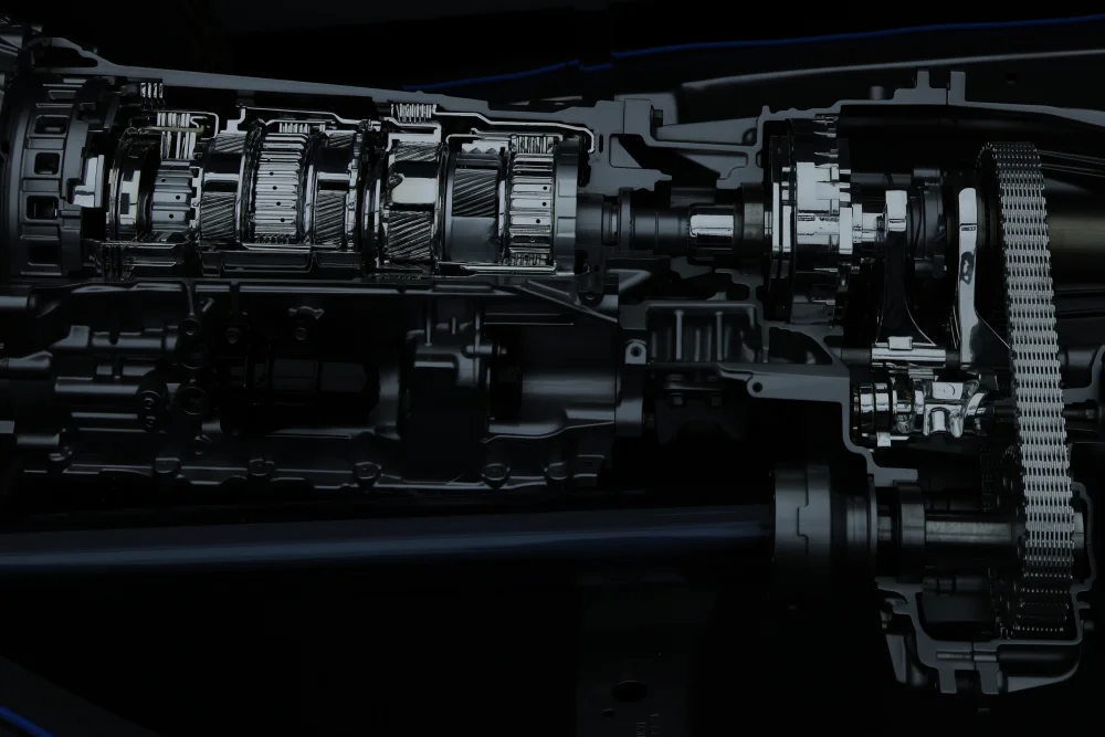 แต่ตัวระบบไฮบริดจะเน้นที่การขับด้วยพลังงานแบบคู่ขนานเพื่อให้แบตเตอร์รี่สามารถขับได้นานๆ และมีระยะทางยาว ใช้มอเตอร์ไฟฟ้าในยามจำเป็น และจับมอเตอร์ไฟฟ้ากำลัง 163 แรงม้า และ แรงบิด 400 นิวตันเมตรยัดในชุดเกียร์ 9 สปีด
