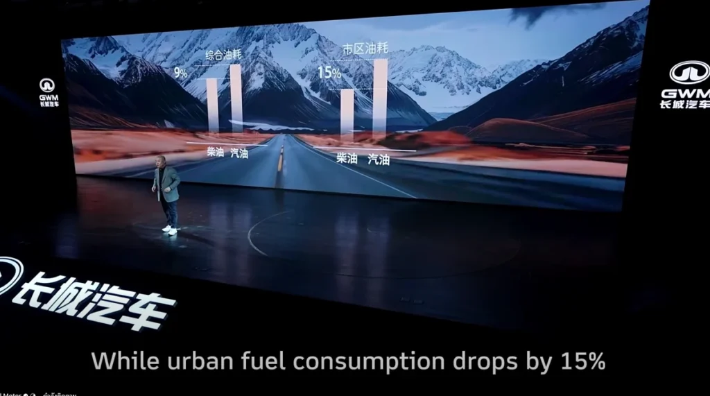 ทาง GWM เผยว่าระบบนี้สามารถให้อัตราประหยัด 6.3 ลิตร /100 กิโลเมตรเมื่อไม่มีพลังงานในแบตเตอร์รี่และสามารถขับไฟฟ้าได้ไกล 363 กิโลเมตร