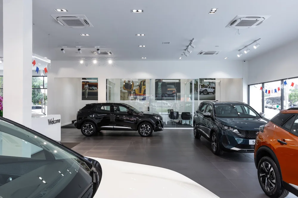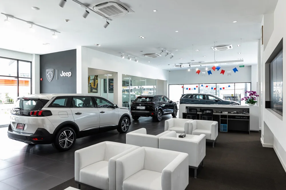 โดยเฉพาะพื้นที่ส่วนกลางออกแบบและตกแต่งสไตล์โมเดิร์น เน้นโทนสีขาว ปลอดโปร่ง สบายตา ช่วยเพิ่มมุมมองการชมรถ เปอโยต์ และ จี๊ป รุ่นต่างๆ ได้รอบด้าน