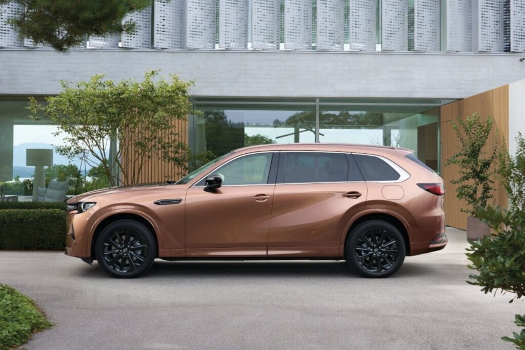 ชุดบังโคลนพร้อมดีไซน์ออกแบบด้วยชุดรังผึ้งส่วนล่างเป็นคิ้วโครเมียมปักคำว่า PHEV ราวหลังคา จุดสังเกตคือการออกแบบในส่วนของเสา B ไปจนถึงเสา D ออกแบบประตูหลังขยายความยาวออกไปเพื่อความสบายในการเข้าออก กระจกเสา D กรอบโครเมียมมีดีไซน์คล้ายรุ่น CX-90 ไฟท้ายคล้ายรุ่น CX-70 แบบ LED Signature ดีไซน์ยาว ล้ออัลลอยขนาดใหญ่สีดำเงา 20 นิ้ว
