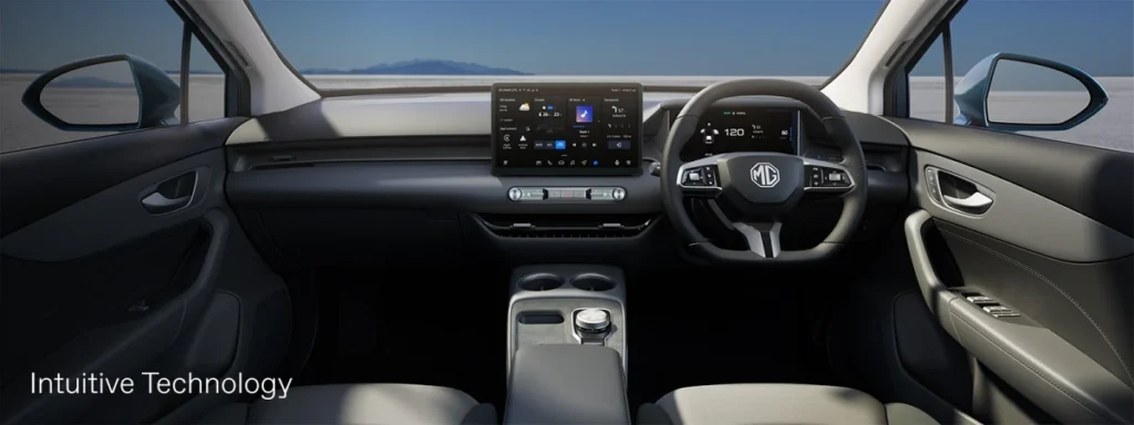 ภายในปรับเอกลักษณ์ตามแบบ MG S5 ที่เพิ่งออกมาวางจำหน่าย แนะนำจอขับขี่ 10.25 นิ้ว พร้อมกับ จอความบันเทิง 12.8 นิ้ว พกระบบนำทางในตัว