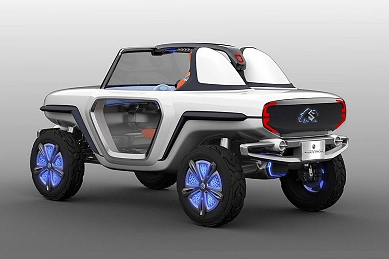 รถต้นแบบคันนี้ได้รับแรงบันดาลใจจากเรื่องราวของโลกหลังการล่มสลาย และนำเสนอความแตกต่างในแบบอเนกประสงค์ของ Suzuki อัดแน่นด้วยเทคโนดลยีเอาไว้ครบครัน ได้รับส่วนผสมของ รถยนต์ Suzuki Vitara และ Suzuki Jimny พร้อมลุยทุกสถานการณ์ด้วยล้อขนาดใหญ่ ยกสุงในสไตล์แบบรถบิ๊กฟุต ด้านข้างตัวรถมีบันไดขเางที่สามรถพับเก็บได้ยามขับขี่ ช่วยเพิ่มความสะดวกในการขึ้นลงรถ